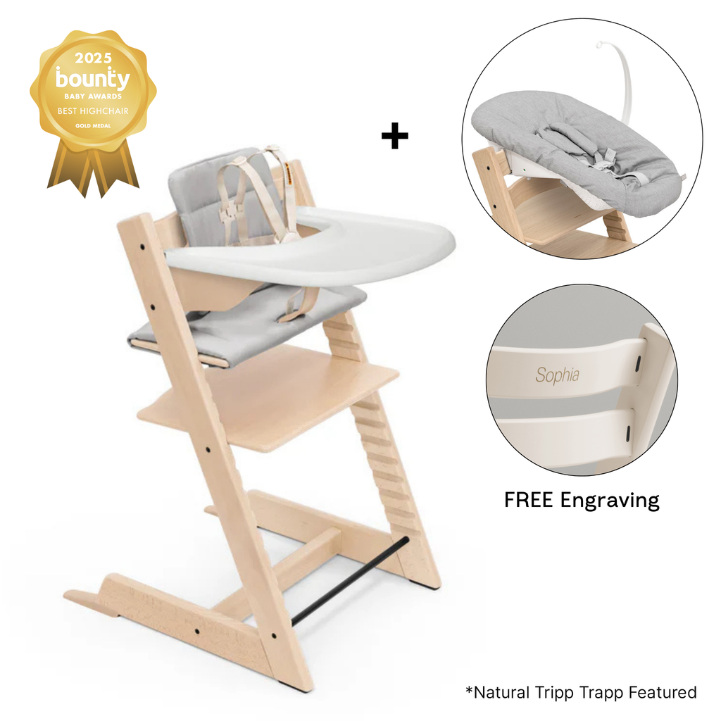 The Tripp Trapp® Feeding Bundle is an excellent long-term investment, combining functionality, safety, and timeless design. Since its creation in 1972, this versatile chair has been a family favourite, evolving with your child through every stage of development.